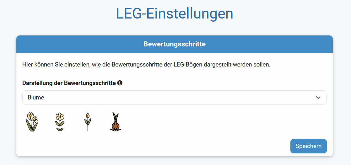 Für die Einschätzung der Kompetenzen können Sie zwischen verschiedenen Symbolsets wählen. Zur Auswahl stehen z. B. eine wachsende Pflanze, Emojis oder Wetter-Symbole. Damit lassen sich Rückmeldungen anschaulich und altersgerecht gestalten.